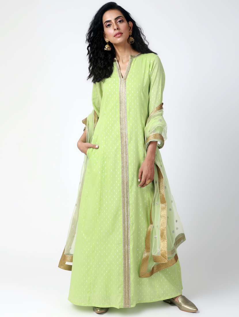pastel green gota patti a-line suit set - 15386361 - Very Small Image - 1