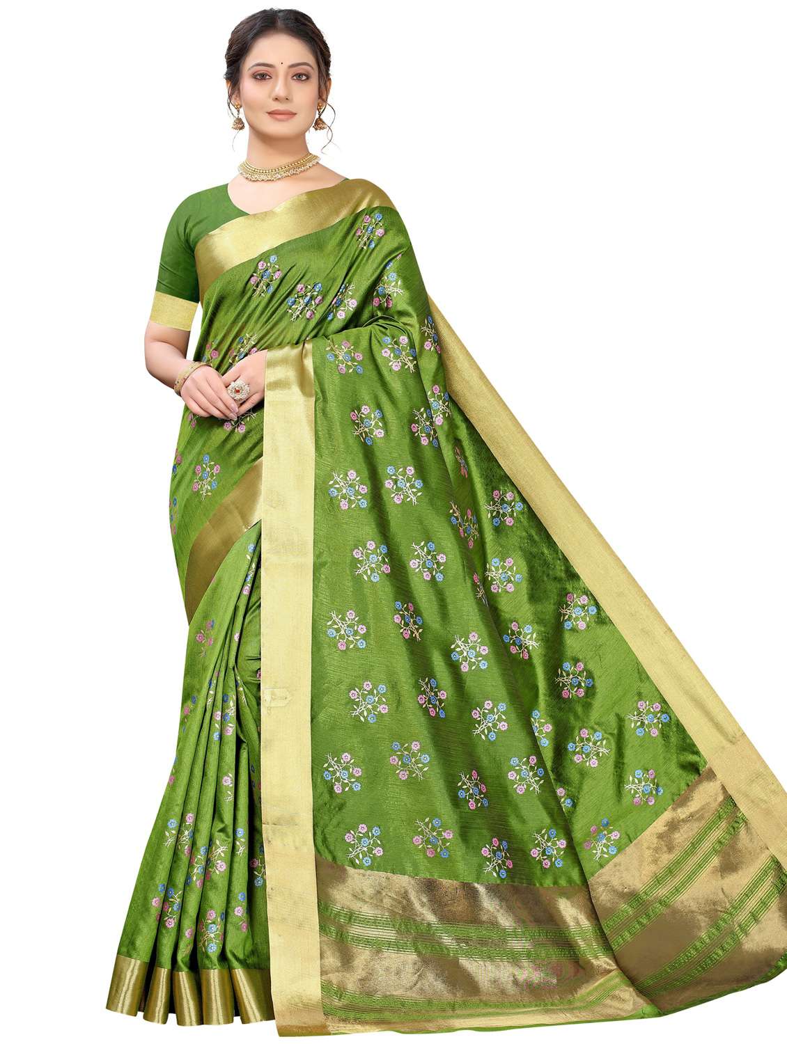 - » women floral print bordered saree with blouse