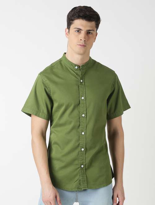 - » olive green solid casual shirt