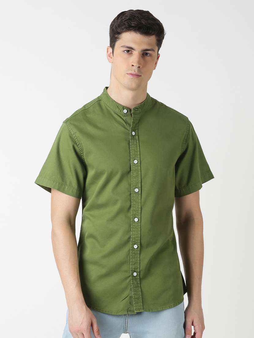 olive green solid casual shirt