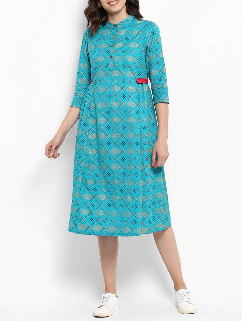 - » printed mandarin collar a-line dress
