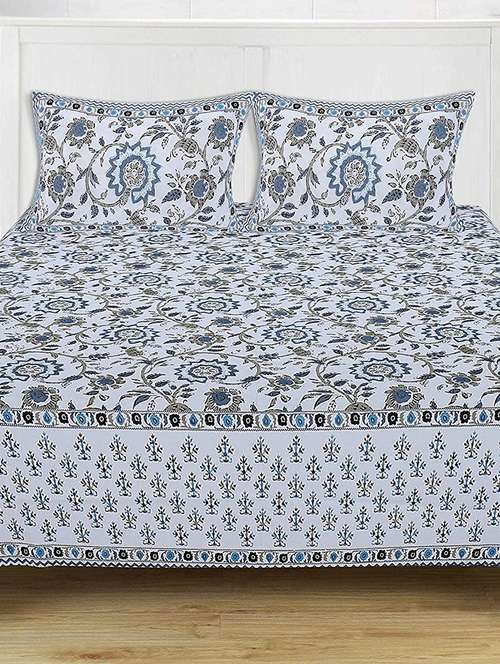 - » brask india 300 thread count cotton double king size bedsheet with pillow covers (bedsheet size 100 x 108 inch) (blue)