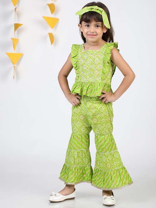 green bandhani print kurta sharara set - 20350253 - Very Small Image - 1