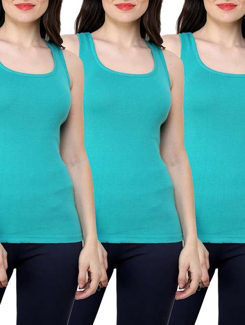 - » set 3 green solid cotton tank tees