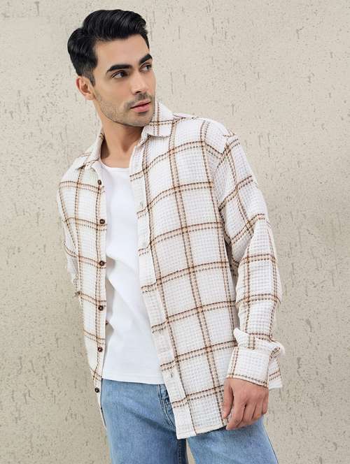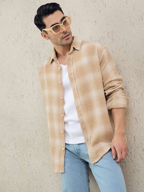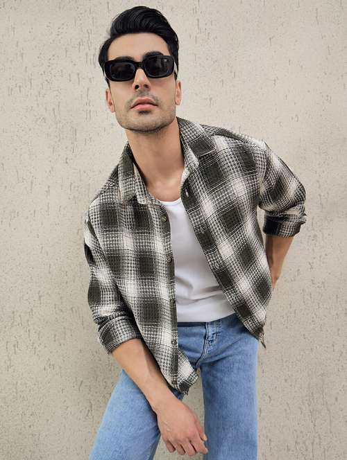 - » men checkered long sleeve oversized casual shirt
