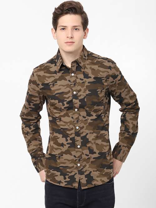 beige camouflage casual shirt
