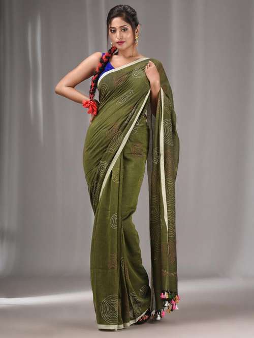 - » women solid with work handloom saree with blouse