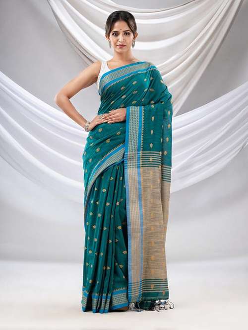 Teal Cotton Handwoven Soft Saree With Texture Design