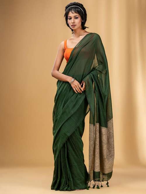 - » women solid handloom saree with blouse