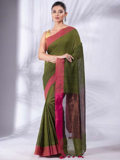 - » women solid handloom saree with blouse