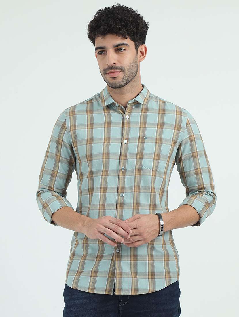 - » men sea green cotton casual shirt