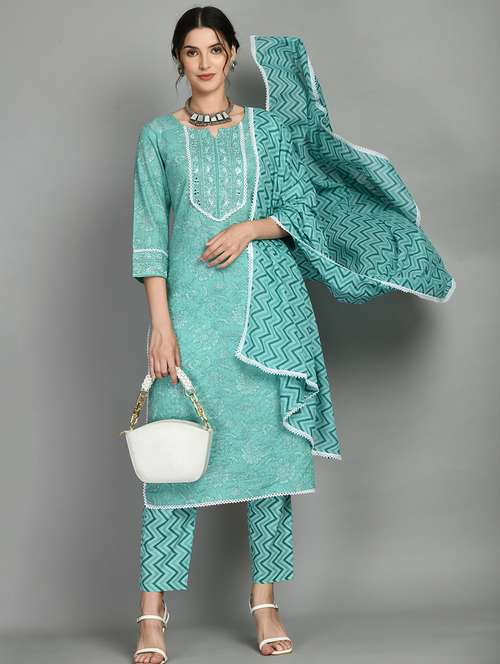 - Find gorgeous sets of ethnic wears in trending designs in turquoise colors suitable for festive wear of occasions.