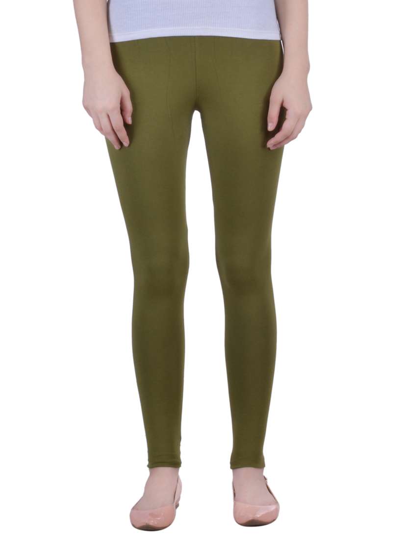 Why does office wear have to be boring Play with ankle length solid in varied colors and great comfort helps you outshine in your busy office hours. This Chatni Green color stylish ankle length legging is made from cotton fabric it will keep you comfortable and will be extremely soft against your skin. Pair with a matching or contrasting short or long kurti for a trendy and attractive look. Top and footwear shown in the image is just for illustrative purpose only.