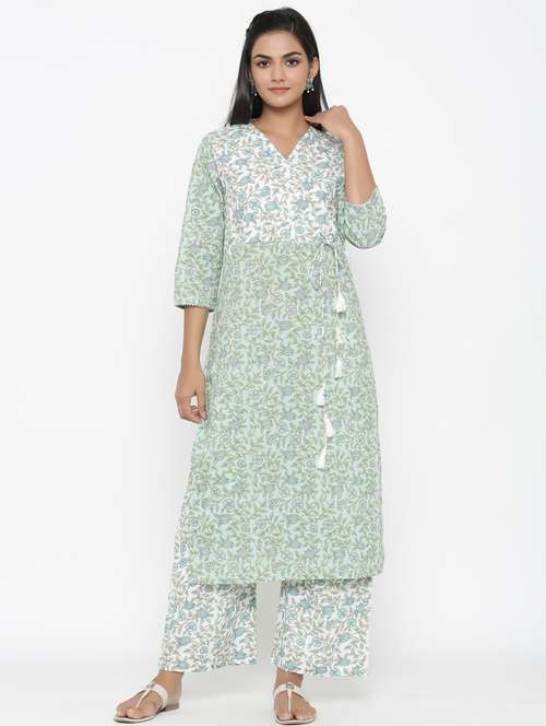 - » green cotton kurta palazzo set