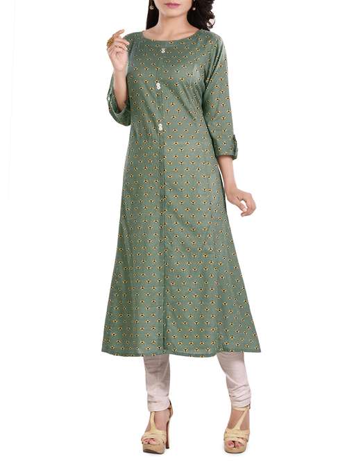 - » olive printed a-line kurta