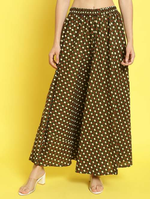 - » green printed flared skirt