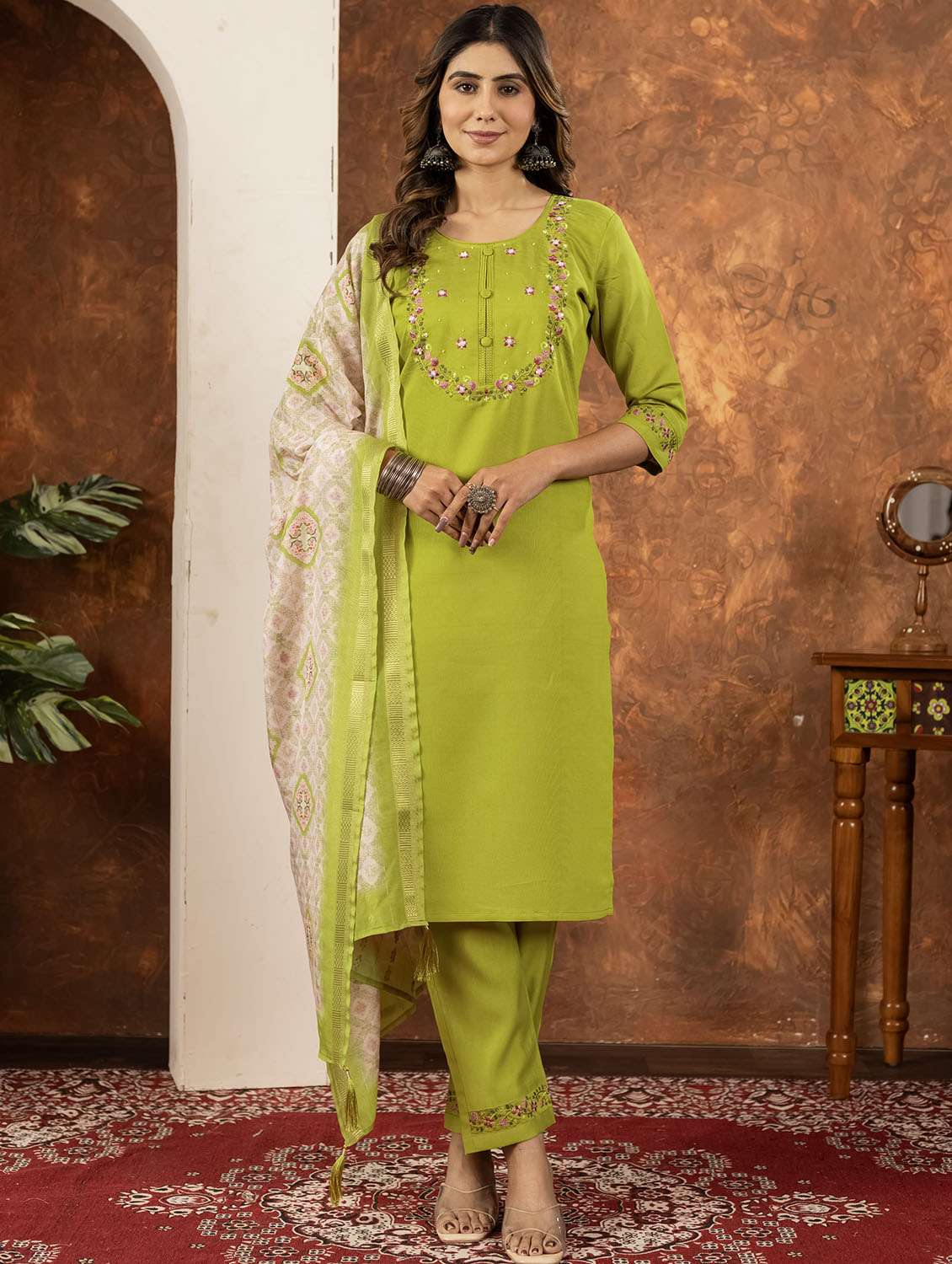 - Find gorgeous sets of ethnic wears in trending designs in green colors suitable for festive wear of occasions.
