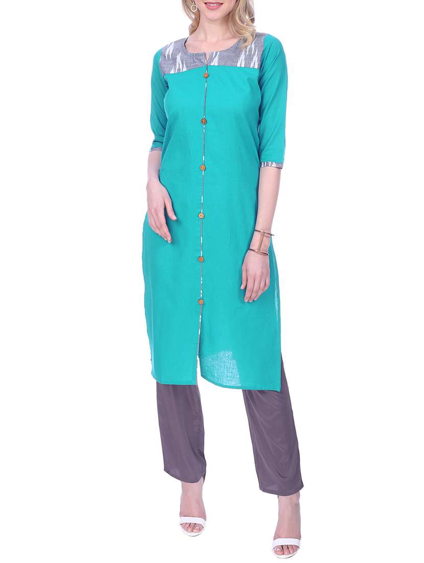 - » sky blue cotton solid kurta