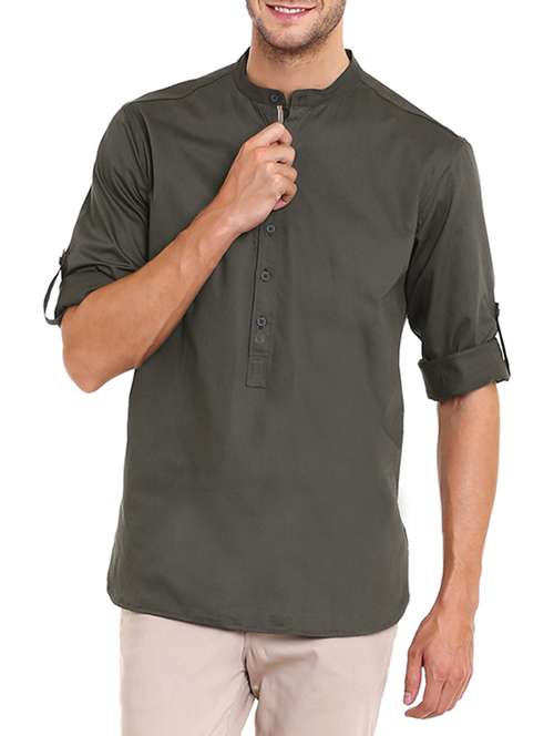 solid reseda green cotton kurta - 11338576 - Very Small Image - 1