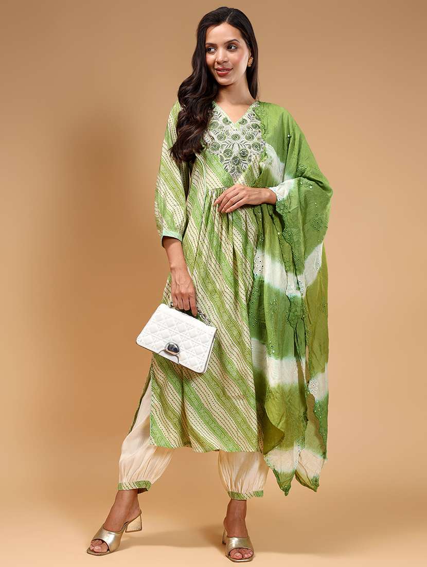 - Find gorgeous sets of ethnic wears in trending designs in green colors suitable for festive wear of occasions.