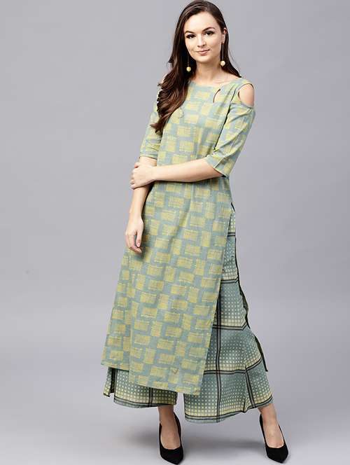 cold shoulder printed kurta with palazzo set