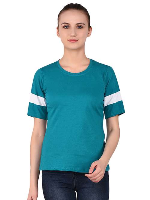 - » women's color block round neck t-shirt