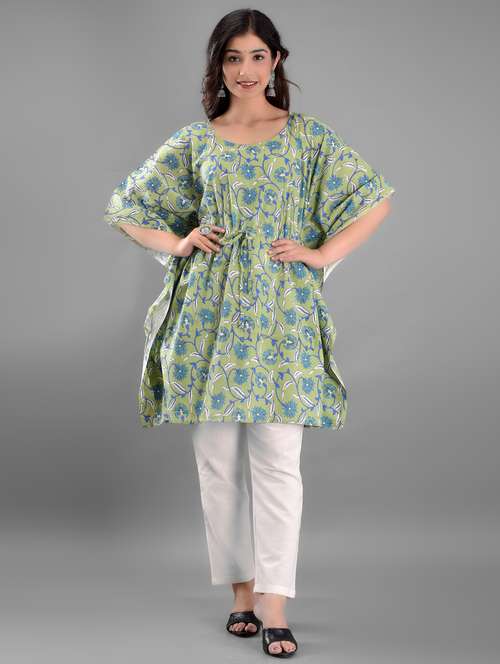 - » green block print kaftan