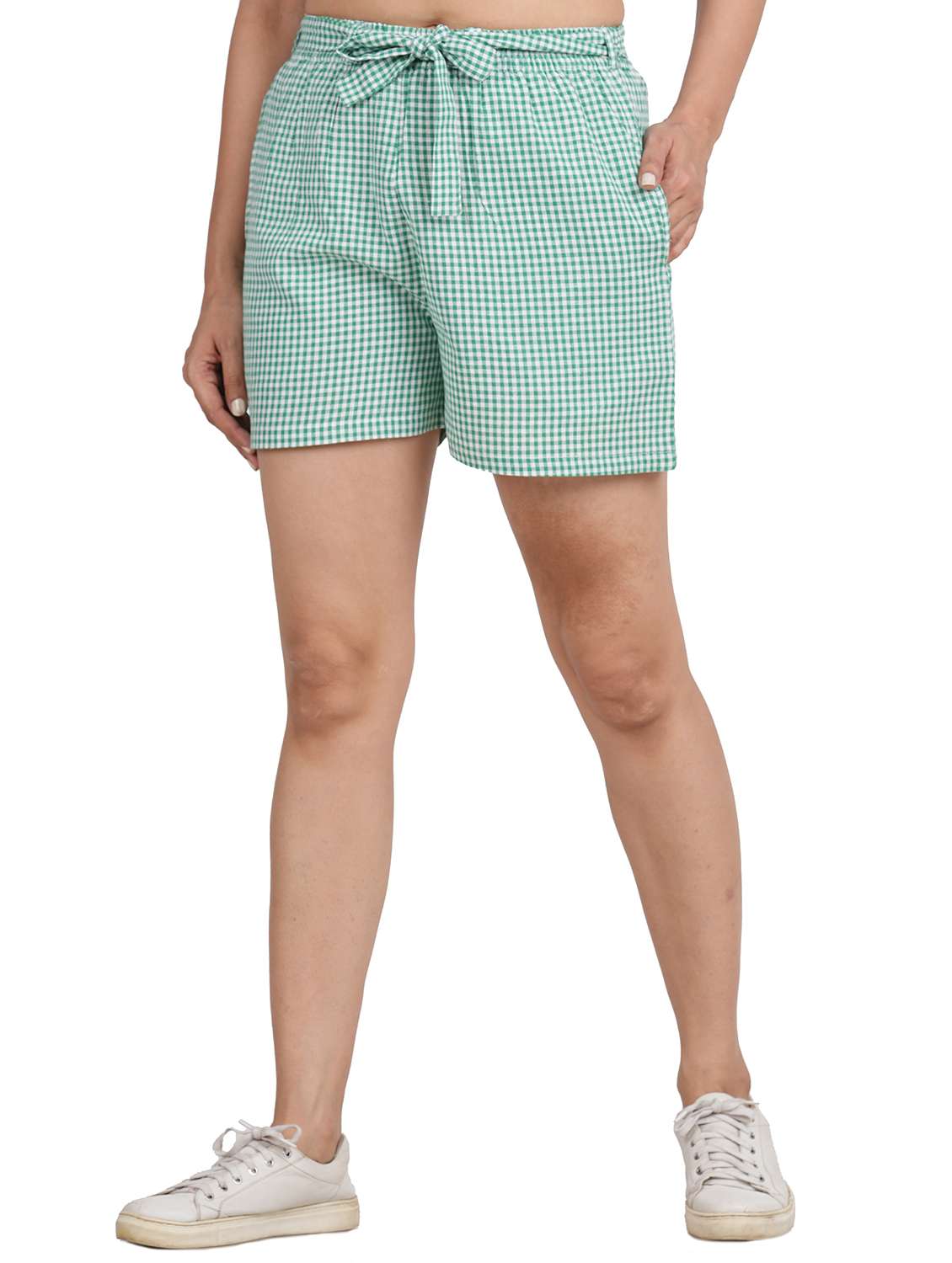 women green cotton regular shorts