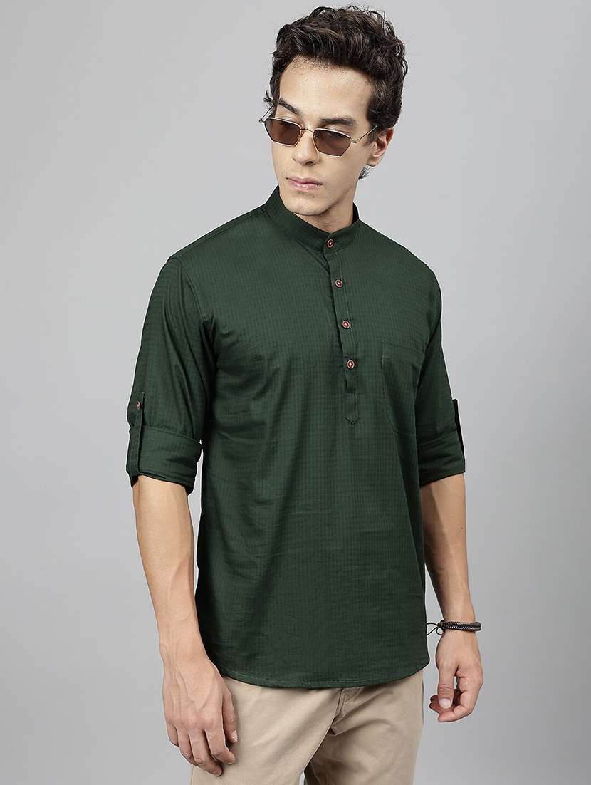 - » men mandarin neck long sleeve short kurta