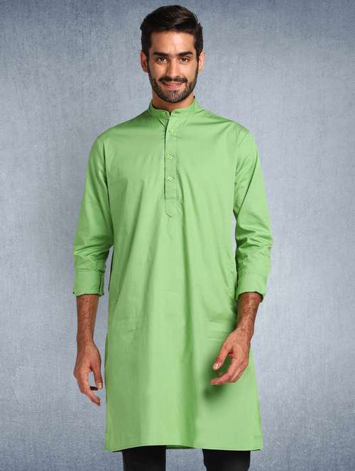 green solid long kurta