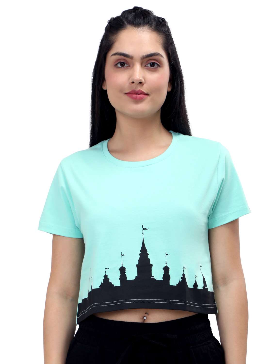 women's crop crew neck top