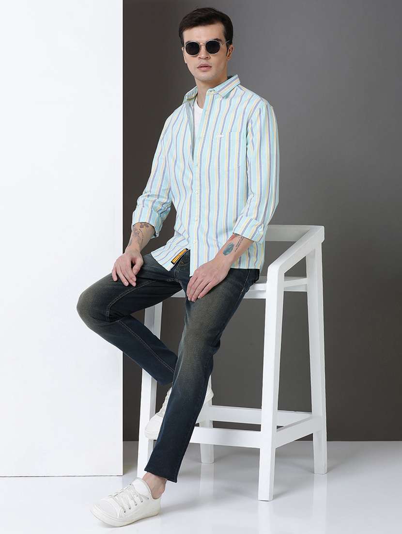 men striped long sleeve regular fit casual shirt