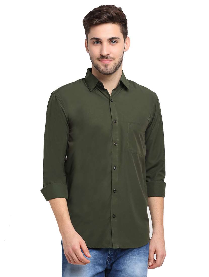 men green solid regular fit collared casual shirt