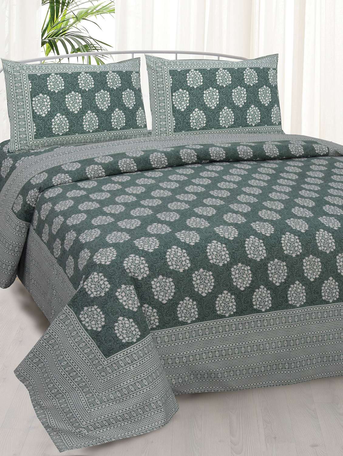 - » jaipurfabric green traditional badge double bedsheet