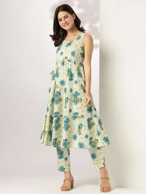 - » women floral sleeveless kurta pant set