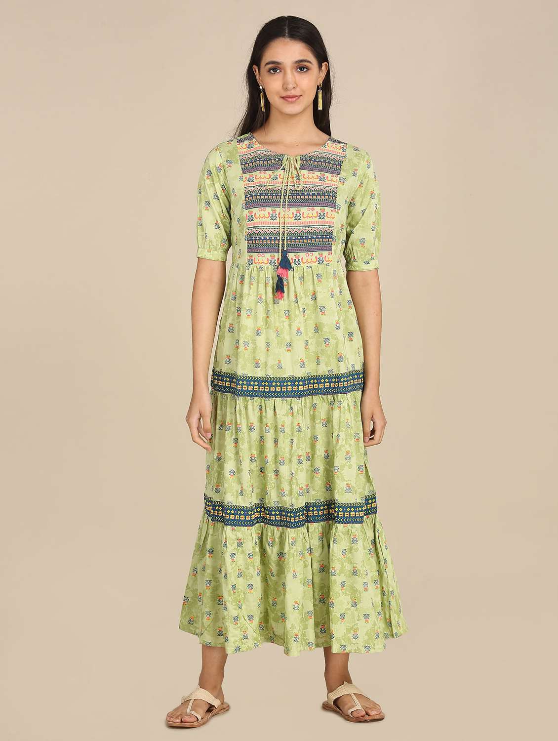 tie up neck printed maxi dress