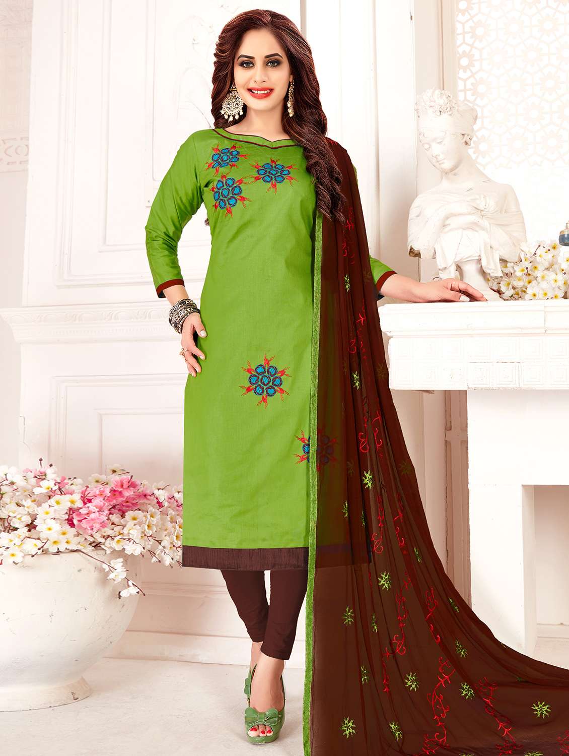 - Look ultra gorgeous in unstitched suits from Kimisha and grab these beautiful suits in green colour.