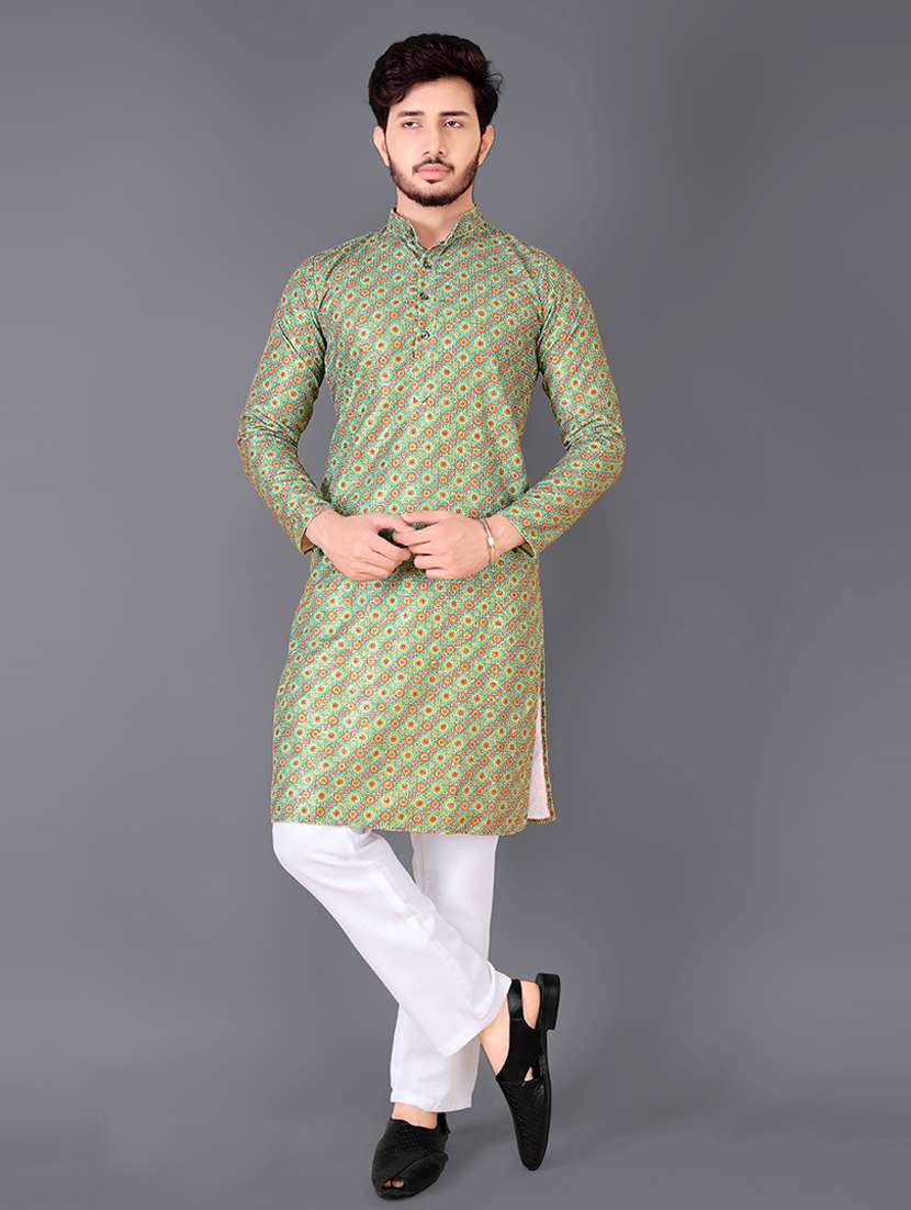Present Sequence Embroidery Work Printed Kurta For Men it's Come With Full Sleev and Knee Length With Two Pockets