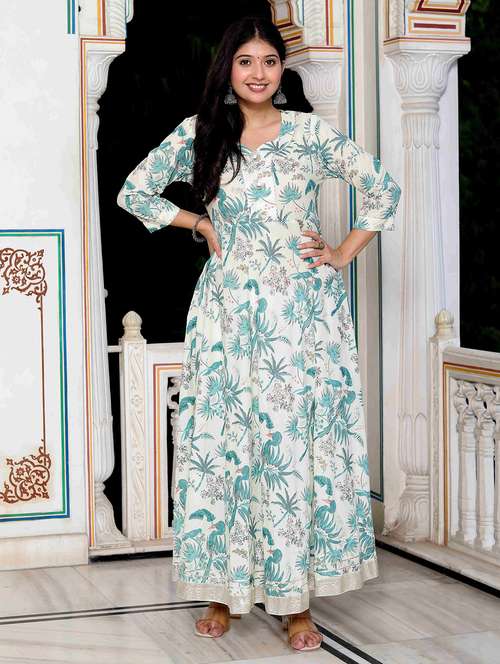 - » women printed three quarter sleeve anarkali kurta