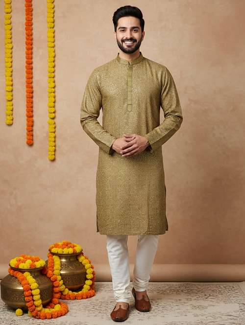 - » men self design mandarin neck long kurta