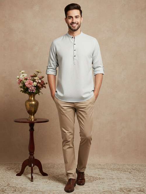 - » men self design mandarin neck short kurta