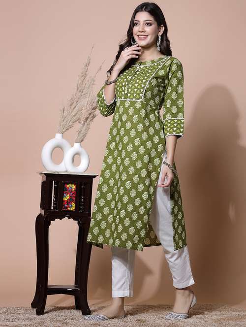 - » women green printed straight kurta