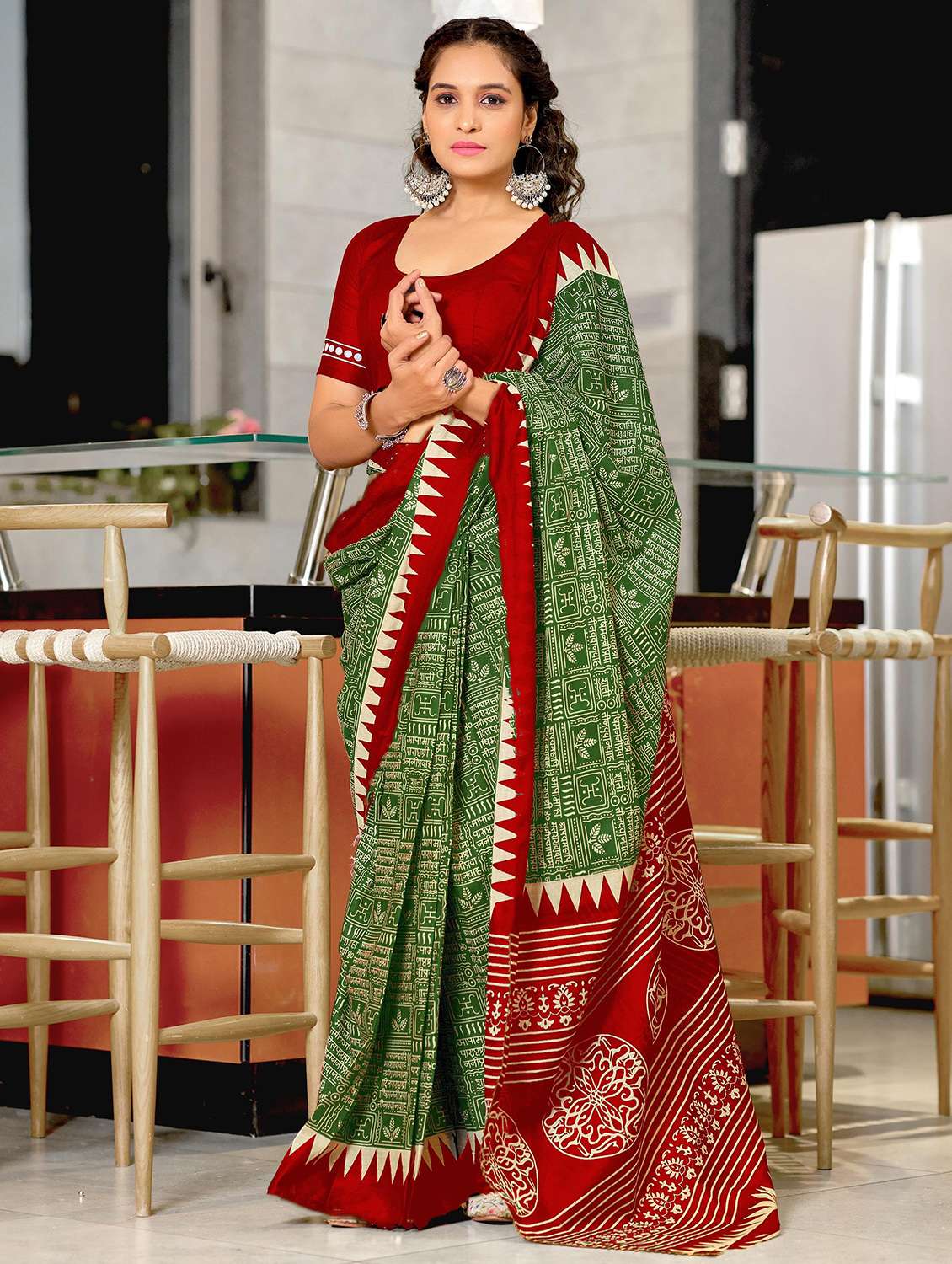 - » women printed casual wear saree with blouse
