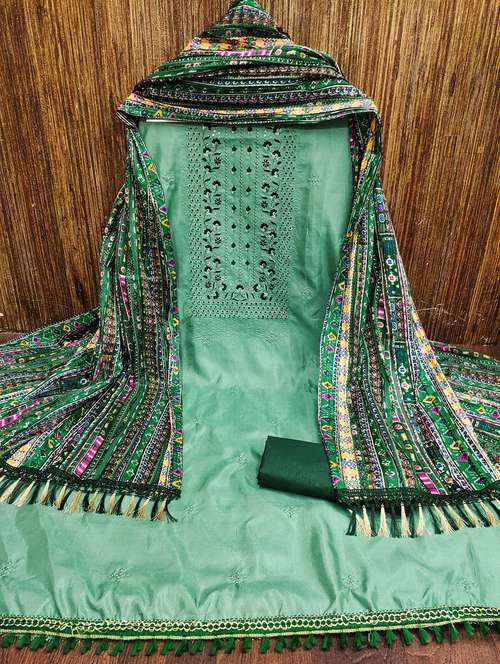- Look ultra gorgeous in unstitched suits from Leeli Peeri Designer and grab these beautiful suits in green colour.