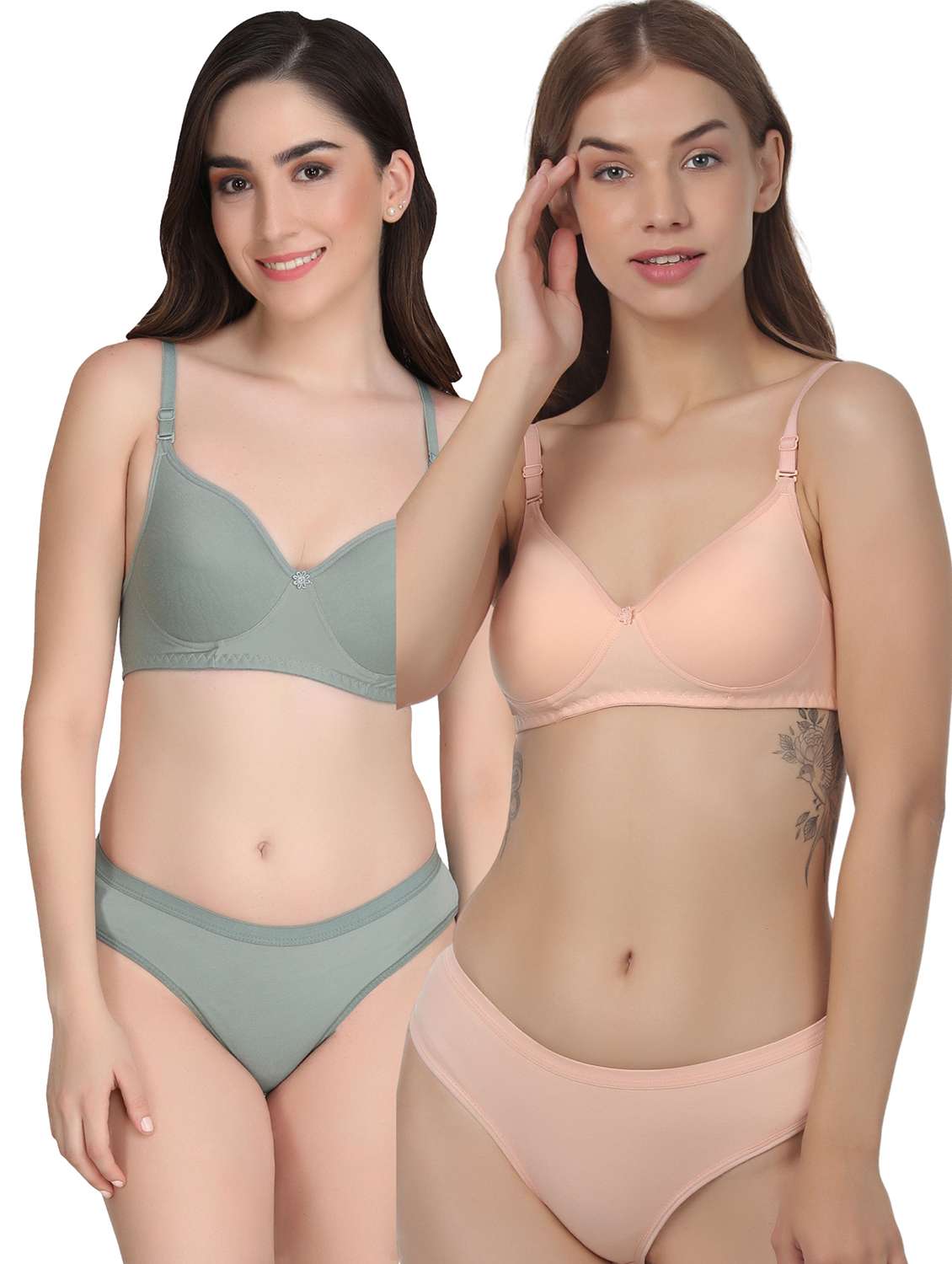 Liigne Women Everyday Padded Bra Panty Set (Pack Of 2) - This Lingerie Set Made of Pure Cotton