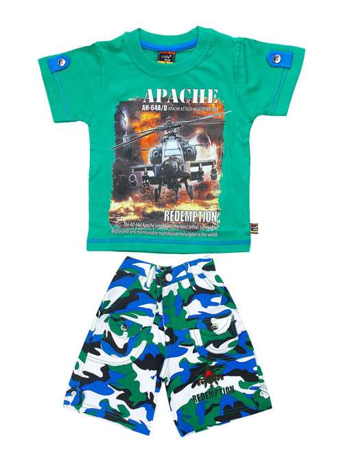 green cotton shorts set