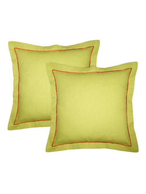 - » lushomes cotton half panama palm cushion covers with red wood satin stitch (pack of 2)