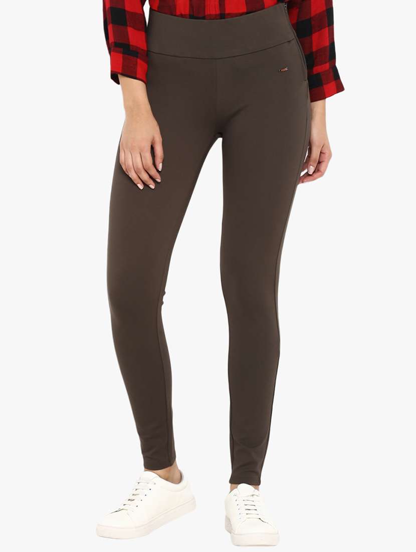 cedar brown solid jeggings