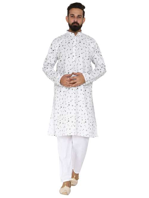 - » white printed long kurta pyjama ethic wear set