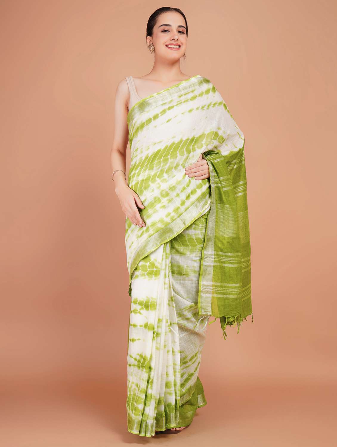 An amazing range of womens ethnic wear in soft and solid colors that looks perfect for regular wear. With beautiful designs and patterns. These apparels are very stylish and comfortable too. Get rid of the traditional look this season wearing these Sarees by Maker's Craft. This Shibori Hand Tye Dyed Saree comes with 5.5 meters length and 1 meter unstitched blouse fabric. Saree fabric- Pure Cotton with Zari, blouse fabric- Pure Cotton with Zari.